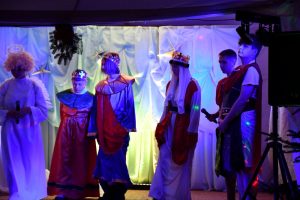 Przedstawienie jasełkowe przypomniało nam, że Boże Narodzenie to nie tylko dekoracje, prezenty i pośpiech, ale przede wszystkim czas, w którym warto zatrzymać się na chwilę i pomyśleć o tym, co naprawdę ważne. Uczniowie, z wielkim zaangażowaniem i sercem, przybliżyli nam historię narodzin Jezusa – symbolu wiary, nadziei i miłości. W spektaklu wybrzmiało mocne przesłanie: każdy z nas ma wolną wolę, każdego dnia podejmuje decyzje i to od nas zależy, czy wybieramy dobro, życzliwość i miłość do bliźniego. Były momenty wzruszające, ale nie zabrakło też humoru, który sprawił, że przekaz stał się jeszcze bardziej zrozumiały i bliski – nawet dla tych, którzy „bez zastanowienia wykonywali rozkazy”, a dopiero później zaczęli dostrzegać, co jest w życiu najważniejsze.