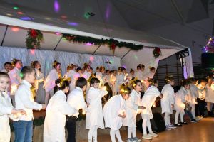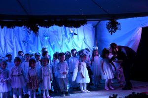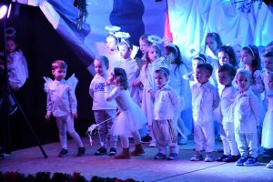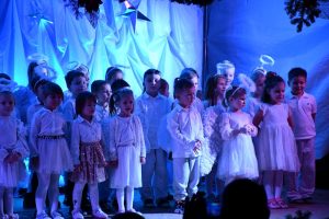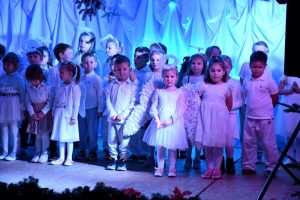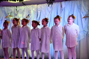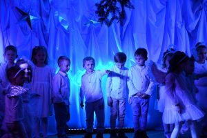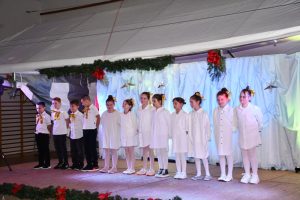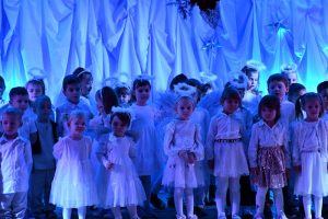 Po jasełkach scena znów wypełniła się radością i świątecznym brzmieniem. Uczniowie klas 1-3 oraz przedszkolaki zaprezentowali piękne kolędy i bożonarodzeniowe utwory. W ich wykonaniu było wszystko: odrobina tremy, ogrom szczerości, dziecięca radość i ta niezwykła magia, która potrafi poruszyć serca dorosłych. Wiele uśmiechów pojawiło się na twarzach widzów, a niejednemu zakręciła się łza w oku.