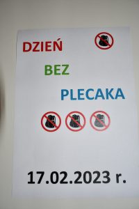 W piątek 17.02.2023r w naszej szkole zorganizowany został dzień bez plecaka