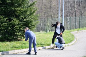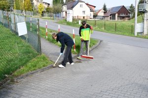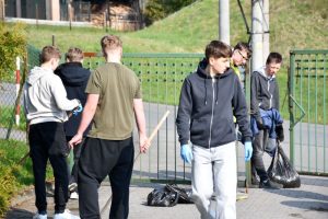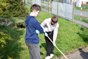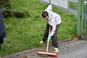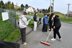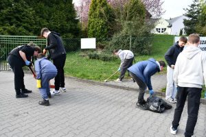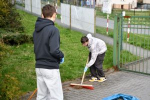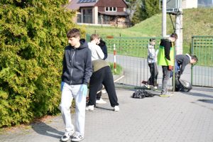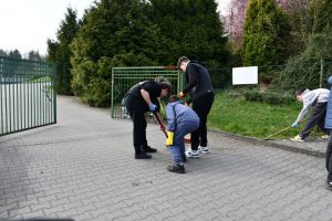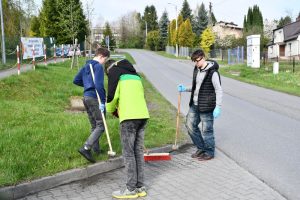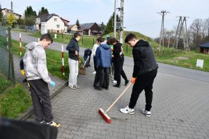 Uczniowie klasy ósmej uzbrojeni w łopaty, szczotki, miotły ruszyli do walki z szybko odradzającymi się po zimie chwastami, które zaczęły wyrastać przy krawężnikach obejścia szkoły. Spod rytmicznych pociągnięć szczotek znikał szary pył wraz z chwastami, odsłaniając w słońcu już czyste krawężniki. Plac przed szkołą zmienił się w prawdziwe mrowisko. Uczniowie z zapałem porządkowali każdy centymetr zarośniętej przestrzeni. Założony cel został zrealizowany.