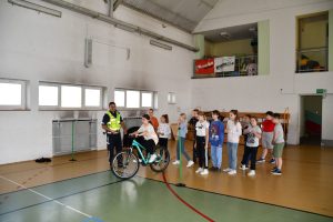 „Pan Policjant przypomniał także o bezpieczeństwie podczas jazdy na rowerze i korzystaniu z ulicy. Prosił także, aby zapoznać się dokładnie z przepisami o ruchu drogowym, szczególnie zaś o niekorzystaniu z komórek podczas przechodzenia przez ulicę!”