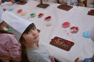 W trakcie warsztatów dowiedzieliśmy się jak wygląda ziarno kakaowca i skąd bierze się czekolada. Zrobiliśmy pyszne tabliczki czekolady i czekoladowe lizaki z ulubionymi dodatkami.