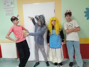 Projekt przygotowany został w grupach, a prezentacja odbyła się 6 marca. Uczniowie przygotowali małe scenki tematyczne wg własnego pomysłu. Stylizacja, charakteryzacja i scenografia dopasowane zostały do zaproponowanego tematu.