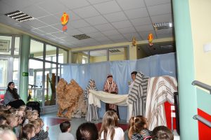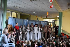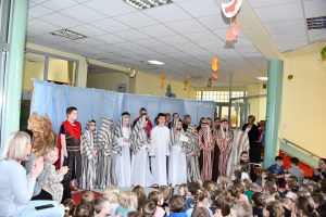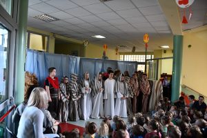 Przygotowane pod kierunkiem p. B. Polak. Misterium przypomniało historię biblijną ostatnich dni przed ukrzyżowaniem, Drogę Krzyżową oraz chwilę zmartwychwstania Jezusa. Piękny występ młodych aktorów, ich stroje oraz oprawa muzyczna wprowadziły nas w nastrój Wielkiego Tygodnia. Występowi towarzyszyła świąteczna atmosfera.