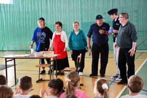 Zachęcili seniorów, aby zawsze po zmroku używali odblasków, dzięki czemu będą bezpieczni na drogach. Również seniorzy przekazali kilka cennych uwag dotyczących zasad bezpieczeństwa, przygotowali krótką część artystyczną, która ubawiła wszystkich obecnych.