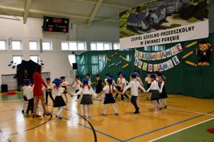 Dzieci , zanim zostały przyjęte do grona społeczności szkolnej, przedstawiły to, czego się już w szkole nauczyły. Odświętnie ubrani i bardzo przejęci zaprezentowali swoje umiejętności. Scenariusz przedstawienia przygotowała ich wychowawczyni Pani Joanna Łasak. Pod jej ” skrzydełkami” pierwszoklasiści wykonali wspaniałe przedstawienie zakończone tańcem z szarfami. Było cudownie 🙂