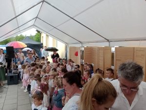 W dni 02.06.2024r Rada Rodziców zorganizowała „Piknik Rodzinny”. Chociaż na początku imprezy pogoda spłatała nam małego figla nie wpłynęło to na dalszy przebieg doskonałej zabawy. Dzieci przywitały swoich najbliższych, babcie, dziadków, ciocie , wujków i oczywiście swoich rodziców, piękną częścią artystyczną w której śpiewały piosenki i recytowały wiersze na temat rodziny. Nie zabrakło oczywiście pokazów tanecznych uczniów. Za te piękne występy rodzice rewanżowali się swoim pupilom zapraszając ich na przygotowane przez organizatorów łakocie.