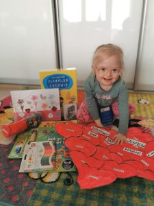 Sara to dziewczynka z Zespołem Downa i dzięki niej i jej mamie mogliśmy poznać i lepiej zrozumieć czym jest trisomia 21 i jak wygląda życie osób z zespołem wad wrodzonych. Bardzo chcieliśmy dać Sarze choć „maleńki kawałek nas” i powstał pomysł by podzielić się z dziewczynką naszą twórczością. Przedszkolaki wykonały album z obrazkami, dołożyliśmy kilka upominków i paczuszka wyruszyła do Warszawy.