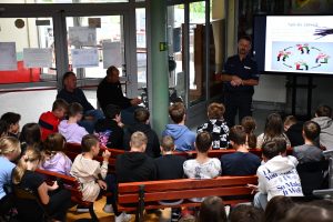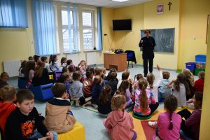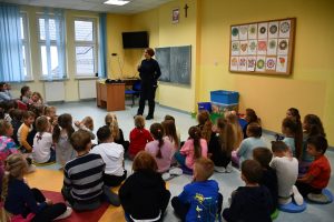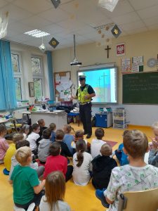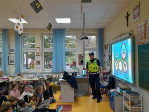 W poniedziałek, 09 października 2023 r., w naszej szkole odbyło się spotkanie uczniów klas I-VIII z funkcjonariuszami policji w Wadowicach – Panią Małgorzatą Hombesch oraz Panem Zbigniewem Przybkiem.