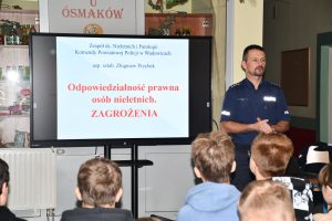 Na spotkaniu uczniowie dowiedzieli się, jakie mają prawa i obowiązki w świetle prawa, kto i kiedy ponosi odpowiedzialność prawną. Poruszane tematy cieszyły się dużym zainteresowaniem wśród uczniów, o czym świadczyły liczne pytania kierowane do policjantów. Fachowe przeprowadzenie zajęć przez specjalistę w dużym stopniu przyczyniły się do wzrostu świadomości zachowań ryzykownych i bezpiecznych wśród uczniów.