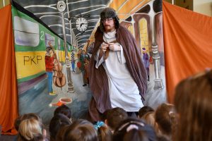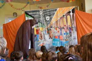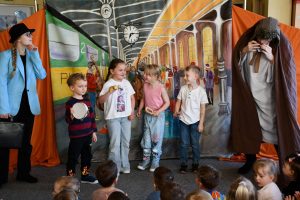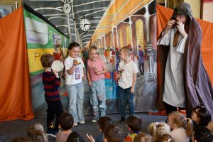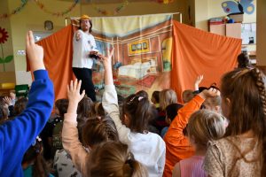 Co możemy ofiarować drugiemu człowiekowi? Na to pytanie dzieci z naszego przedszkola szukały odpowiedzi oglądając spektakl Teatru Eden pt. „Najpiękniejszy prezent”.