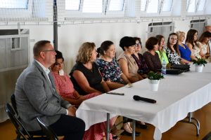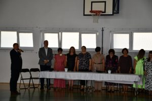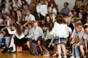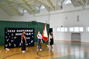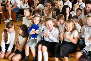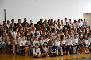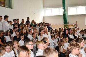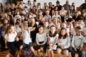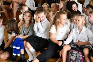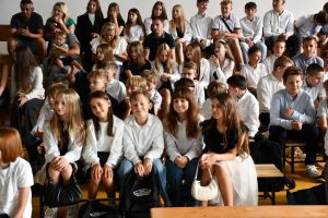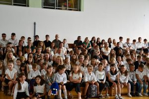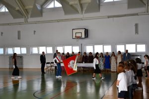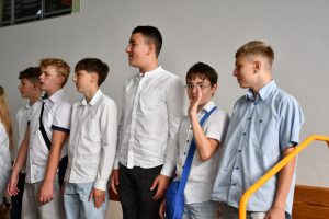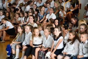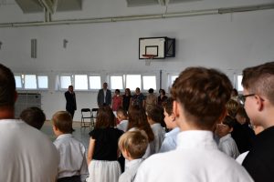 Następnie uczniowie udali się do szkoły, a konkretnie na salę gimnastyczną, gdzie odbyła się ceremonia rozpoczęcia nowego roku szkolnego.