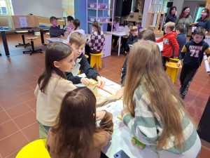 We środę 17 stycznia 2024 roku uczniowie klas 5 i 4 pojechali do kina na seans filmowy pod tytułem „ Akademia Pana Kleksa”. Wycieczka miała na celu kształtowanie wrażliwości estetycznej poprzez aktywny odbiór sztuki filmowej, kształtowanie nawyków kulturalnego zachowania się w miejscach publicznych, oraz bezpiecznego zachowania w środkach transportu. To również doskonała okazja do integracji uczniów i wzmocnienia więzi koleżeńskiej. Po seansie grupa udała się do Strefy Odkrywania Wyobraźni i Aktywności, gdzie zapoznała się z eksponatami, a później aktywnie spędzała czas w Majsterni, gdzie mogła doświadczać i samodzielnie poszukiwać odpowiedzi na nurtujące ich pytania.